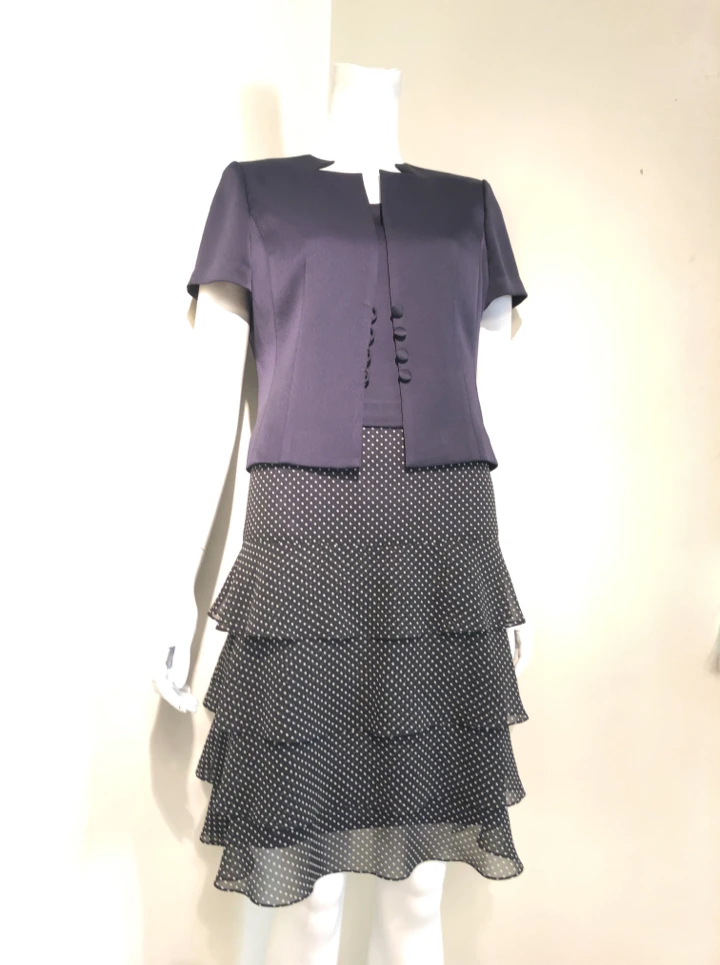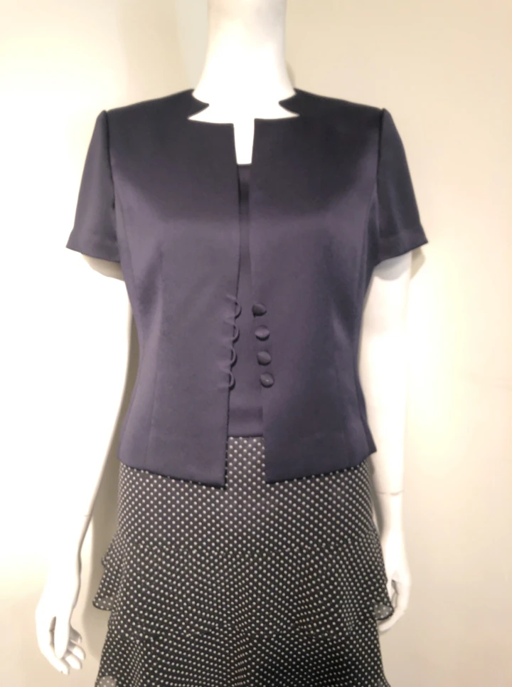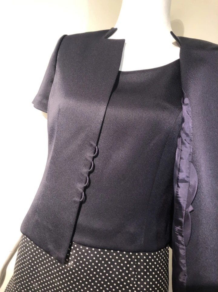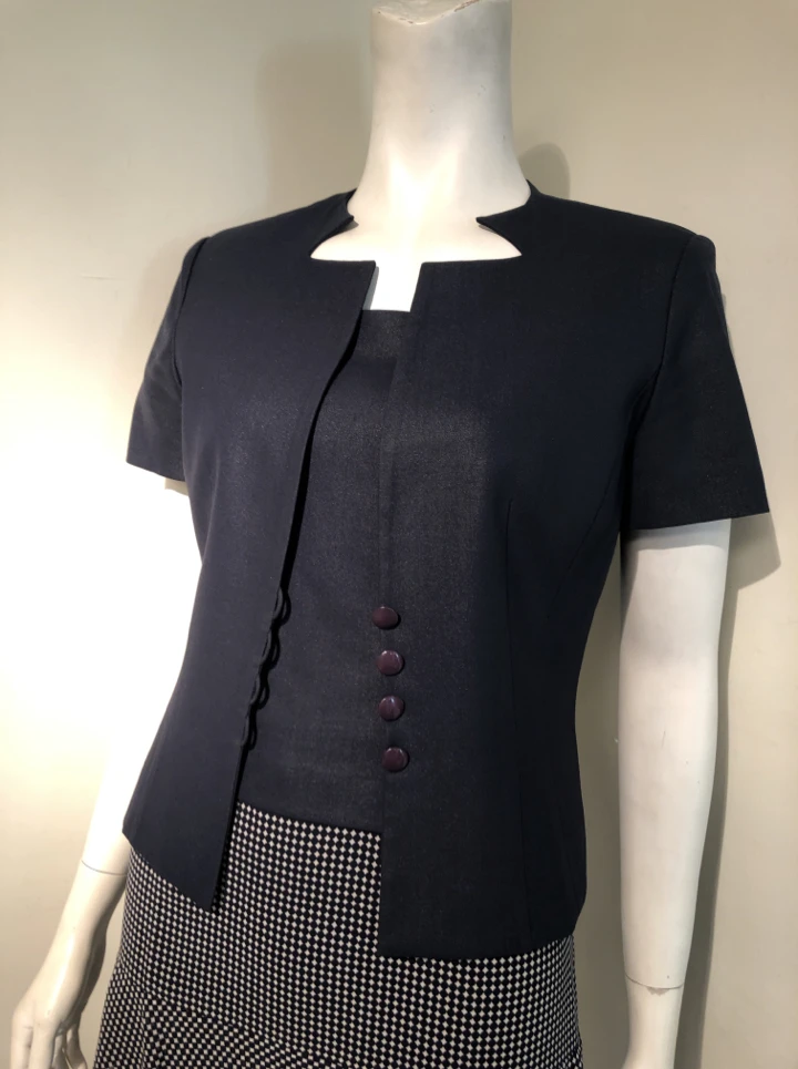 客人有一套短袖外套 + 無袖洋裝 套裝